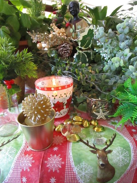 Y ya convive conmigo en un mueblecito de mi salón, va muy bien vestido y sostiene una bandeja para servir. Yo le pongo flores, y en este caso decoración navideña, y cada vez que le paso el plumero para sacarle el polvo le digo "negrito que feliz me hace que vivas conmigo" ^:^