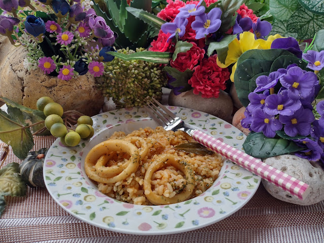 Viendo eso no me dió la realísima gana comprar un calamar fresco a un precio desorbitado; entre otras cosas porque eran muy grandes; y me fuí a la nevera de congelados, para coger un tubo de pota que también era grande, (pero el precio era mucho más pequeño :)cosa que ya he hecho un montón de veces, porque en realidad, bien cocinado y aderezado, su sabor a mar aunque más discreto que el calamar también da el pego; y para sentirme alimentada comiendo a gusto, a mi me vale, por supuesto que me vale.