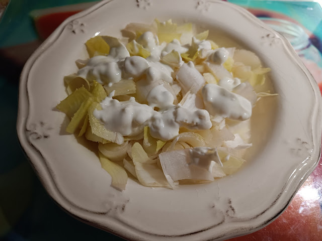 Comí el pollo de primer plato, y de segundo me serví esta ensalada que véis que me supo deliciosa, porqué la endívia es uno de mis vegetales de ensalada favorit@s.